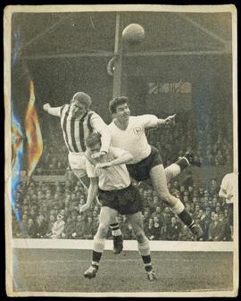 A Tussle for the Ball in the Spurs Goalmouth Between Derek Kevan