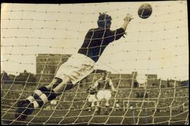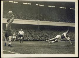 The Leeds United Goalkeeper, Makes a Flying Save form a Shot by Chelsea’s Inside-Right Graham
