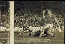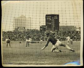 Goalkeeper Dwyer of Swansea Fails to Stop a Penalty Shot From Chelsea Inside-Right Tambling