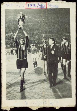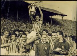 J.Dixon, the Astons Villa Captain Proudly Holding the Cup Aloft as He is Chaired by his Team Mates