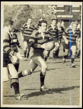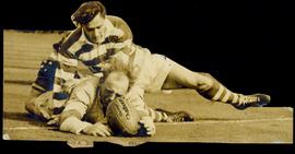 Williams of Llanelli Turns in Mid-Air to void the Concerted Tackles of Black heath Players, With K.E. Groves Falling as he Fails to Came to rips, in the Harlequin Invitation Seven-a- Side Tourney at the Stoop Memorial Ground, Recently