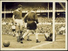 Referrer Mr. N. Burtenshaw Rushes Over to Bolton Goalkeeper Eddie Hopkinson who Collapsed After Making a Spectacular Save in Their Match Against Tottenham