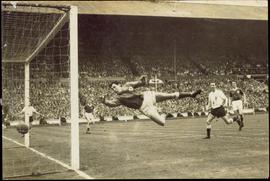 Banks, the Leiceser Goalkeeper, Makes a Remarkable Leap but Fails to Stop Dyson from Scoring Tottenham’s Second Goal
