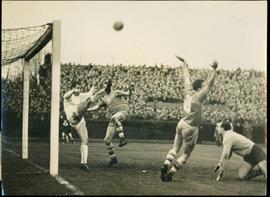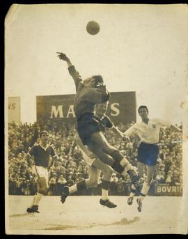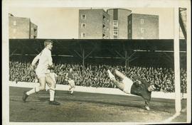 Bolton’s Goalkeeper Hopkinson Punches the Ball Clear During a Raid by the Tottennam Forwards in Saturday’s Game Which ended in a Two-All Drau