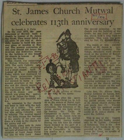 St. James Church Mutwal Celebrates 113th Anniversary