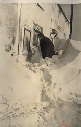 Behind the Huge Snowdrift,a Villager Jokingly Studies the Bus Time-Table at Sparrowpit,Derbyshire